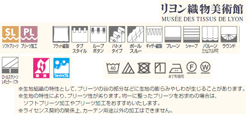 「リヨン織物美術館」は、「フランスの美の結晶」といわれるリヨン織物美術館収蔵品の中から厳選した柄をもとに、現代のインテリア空間を彩るファブリックスとして創りあげた、東リのオリジナルカーテンシリーズです。