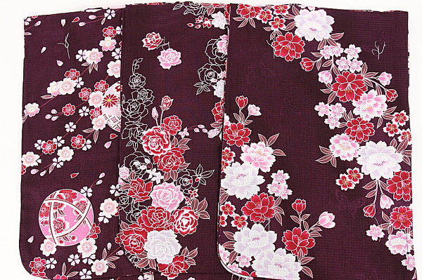 サイズ 着物丈 : 約140cm 袖丈 : 約 50cm 裄丈 : 約 63cm 色 1.えんじ×ピンク(まり) 2.えんじ×ピンク(バラ) 3.えんじ×ピンク(八重桜) 素材 綿100% 商品写真に関してのご注意 できるだけ商品と同じ色目を出すよう努力しておりますが、表示画面等の違いから現物と色の違いが生じる場合がございます。