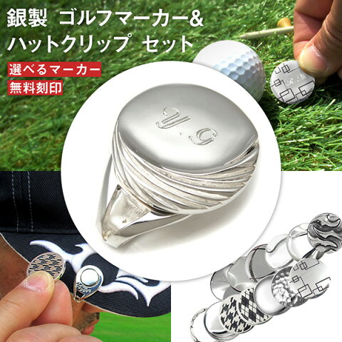 ゴルフマーカー(石なし) ハットクリップ セット 名入れ シルバー925 ギフト プレゼント 父の日 還暦 退職 送別 誕生日 お祝い 敬老の日 コンペ ラウンド用品 景品 記念品 ゴルフ用品 オリジナル ボールマーカー マグネット キャップ 男性 女性 刻印 銀製 送料無料 MS-035A