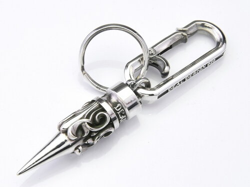ソリッドな彫刻が目を引くカラビナに特大のスパイクパーツをセットした迫力のキーチェーン。