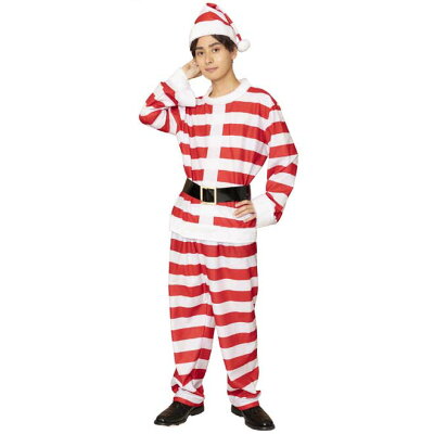 珍しいボーダー柄のサンタ!とにかく目立ちたい人に!サンタランなどでも目立つこと間違いなし! ■セット内容:帽子、ジャケット、ベルト、パンツ ■素材:ポリエステル100% ■洗濯表示:洗濯不可、塩素系漂白剤による漂白不可、アイロンは中温で当て布使用、ドライクリーニング不可。