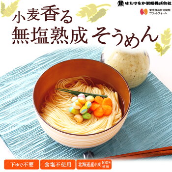 【宮城 はたけなか製麺】 【無塩そうめん】 【4袋】 常温 小麦香る 無塩熟成そうめん 270g×4袋 約8〜12人前 食塩不使用 減塩食生活 北海道産小麦100%使用 無塩麺 無塩乾麺 無塩素麺 流しそうめん にゅうめん 冷温OK ギフト ネコポス 送料無料 東北大学産学連携開発商品