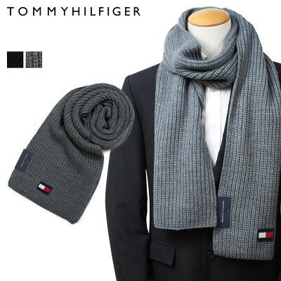 トミーヒルフィガー TOMMY HILFIGER マフラー メンズ ブラック グレー H8C83203 TH-F18-5003