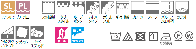 SL ソフトプリーツ加工[形態安定加工]カーテンの裾の広がりを抑える加工を施した縫製仕様です。