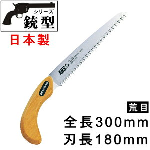 【 のこぎり ・ 日本製】《銃型シリーズ》ウッドハンドル ピストル型のこぎり 荒目(刃長180mm) サヤ付き【お庭/庭木/枝切り/ノコギリ/お庭のお手入れ/よく切れる/サクランボの木や 柿の木 等の剪定にも!/業務用/家庭用/園芸農家用/替刃式/鋸/カット/片刃