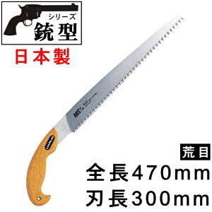 【 のこぎり ・ 日本製】《銃型シリーズ》ウッドハンドル ピストル型のこぎり 荒目(刃長300mm) サヤ付き【お庭/庭木/枝切り/ノコギリ/庭のお手入れ/切る/よく切れる/銀杏の木 など、 太めの樹木の剪定にも 便利/業務用/家庭用/刃渡り長い/替刃式/鋸