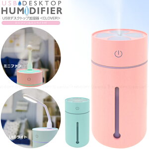 USBデスクトップ加湿器 クローバー型 / コンパクト スマート 加湿器 卓上 おしゃれ 癒し LED ライト インテリア 超音波式 USB 睡眠 オフィス ミニファン ミニライト